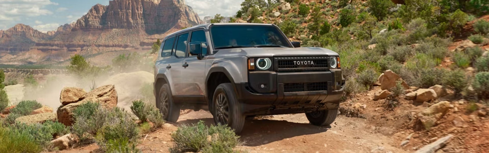- Land Cruiser stays true to its roots with a bold, heritage-inspired design built for modern exploration. Featuring a classic “TOYOTA” heritage grille, squared-off side mirrors and athletic fender flares, this icon is reimagined for today’s adventures—whether tackling rugged trails or roaming city streets with confidence.