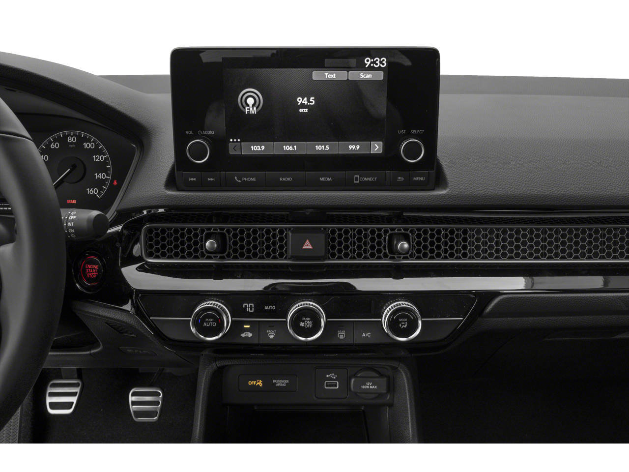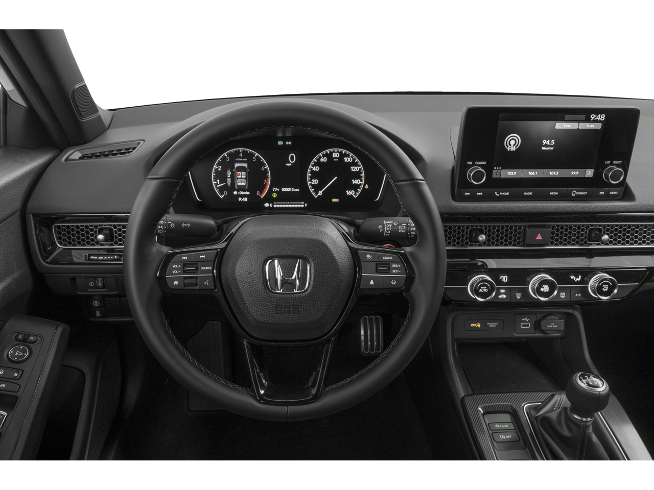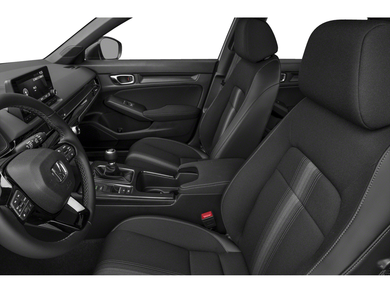 The Civic Sport's interior is a harmonious blend of style and functionality, featuring a premium Cloth/Leatherette Seating Surfaces, a comfortable Front Center Armrest, and a Split folding rear seat for versatile cargo-carrying capabilities. The intuitive infotainment system, complete with an 180-Watt Audio System, seamlessly integrates your smartphone, keeping you connected and entertained on every journey.